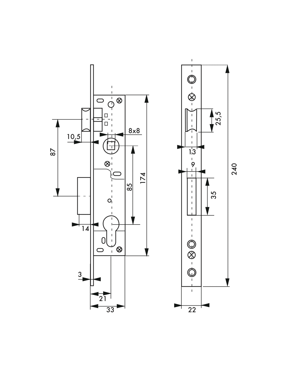 serrure de portail Thirard axe 85 mm